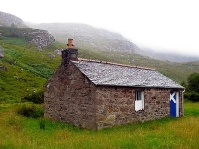 After an uneventful drive round to Dundonnell, we park beside the Smiddy. A bothy, belonging to the Edinburgh Junior Scottish Mountaineering club, unmistakeable with its large saltire painted atop the strikingly blue door.