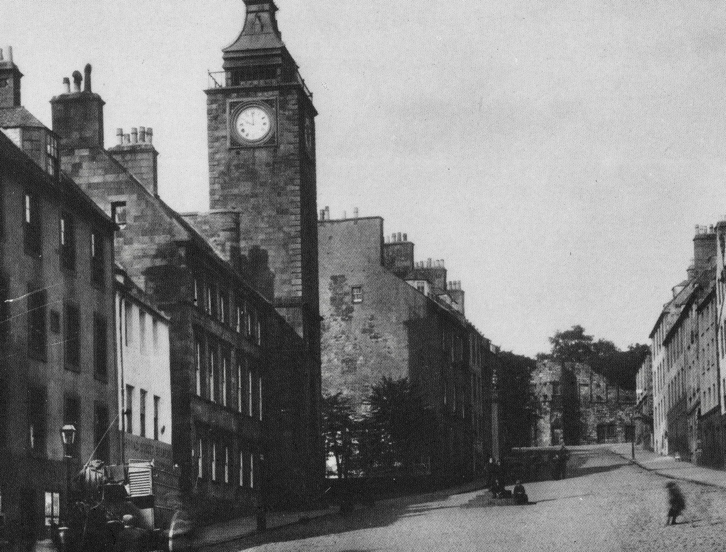 Tollbooth, Stirling, and the town gaol is the building on left with the clock tower. Image part of the Francis Frith collection.
