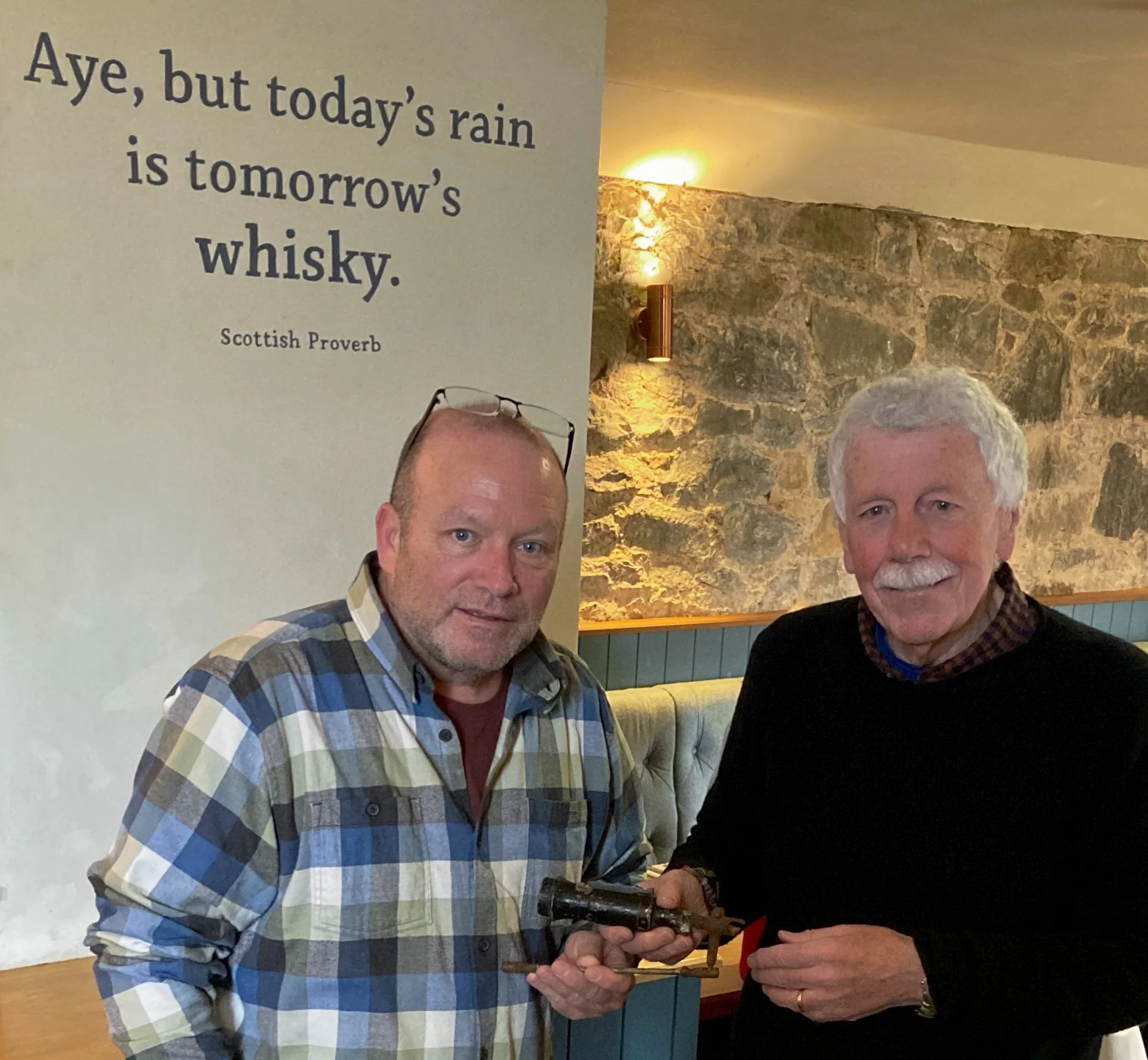 On 26th February, I handed over the Mk XIV bomb sight to a member of the Royal Canadian Airforce at a hotel in Stirling. I am the white haired person on the right.