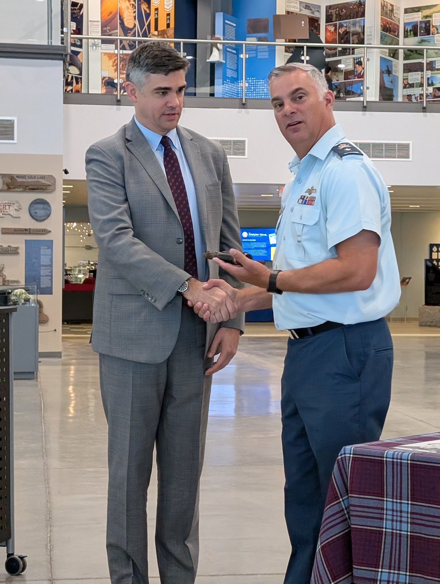On Friday 27th June 2025, nearly 81 years after the crash, Brig.-Gen. Ryan Deming, who also serves as RCAF, director of general air and space readiness, presented Joe Tucker – Joseph’s nephew – with the bomb aimer’s handle artefact, recovered from the crash site.
