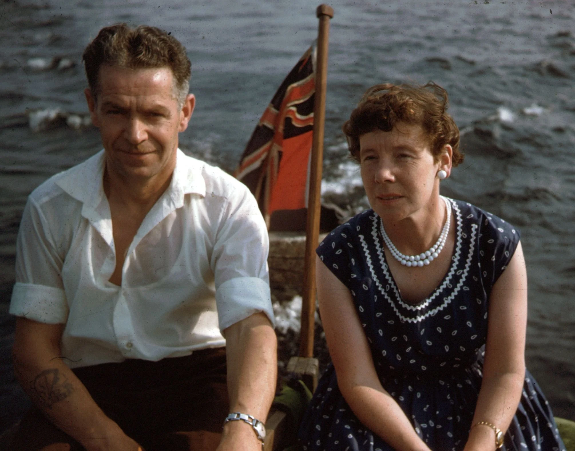 dad and mum at the tiller of The Seahawk on Loch Lomond