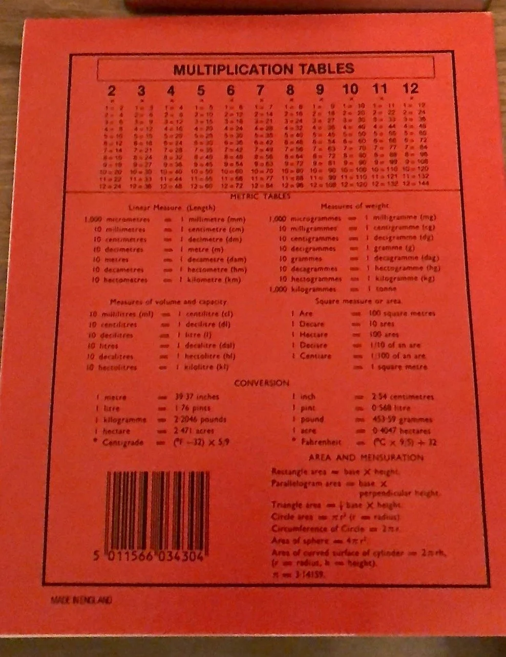 It was a red, soft-covered primary school exercise book, complete with multiplication tables on the outer back cover. It had a ragged hole punched at the top edge, through which a length of string had been inserted and formed into a loop, thus allowing said ‘exercise book’, to hang from a cleverly situated nail adjacent to said fire escape door, thus transforming an innocent children’s exercise jotter into a strategically important ‘fire test recording’ document.